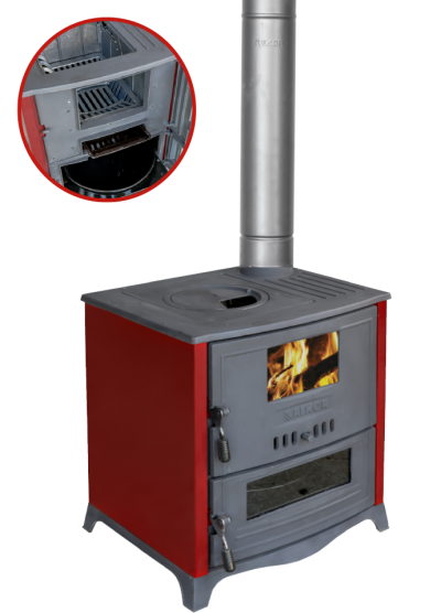 Amisos döküm tuğlalı odun sobası konforlu kullanımı kuzine keyfiyle birleştirebilmek amacıyla kompakt bir yapıda ve fırınlı olarak tasarlandı. Fırını diğer sobalardan farklı olarak yanma haznesinin altına yerleştirildi. Gövdesi 1 mm sacdan üretilip emaye ile kaplandı. Dökme demir olan üst plakası, cam çerçeveleri, cam kapakları ve ayakları Rekor’un modern teknoloji ile üretim yapan dökümhanesinde üretildi ve yanmaz boya ile boyandı. Yanma haznesinin kapak camında Almanya’da üretilen yüksek ısıya dayanıklı Schott Robax markalı seramik cam tercih edildi. Fırın çerçevesinde özel kesilip rodajlanmış temperli cam kullanıldı. Fırın ve yanma odasının camları sızdırmazlık özelliğine sahip özel fitil ile güçlendirildi. Kolay kullanışlı kül boşaltma sistemine ve yüksek kapasiteli yanma haznesine sahip olan Amisos üstte ve önde yakıt yükleme kapağına sahiptir ve tüketicilere yüksek ısı verimliliği sunar.